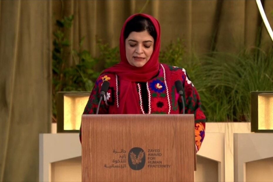 Afghan activist Zarqa Yaftali receives the Zayed Award for Human Fraternity