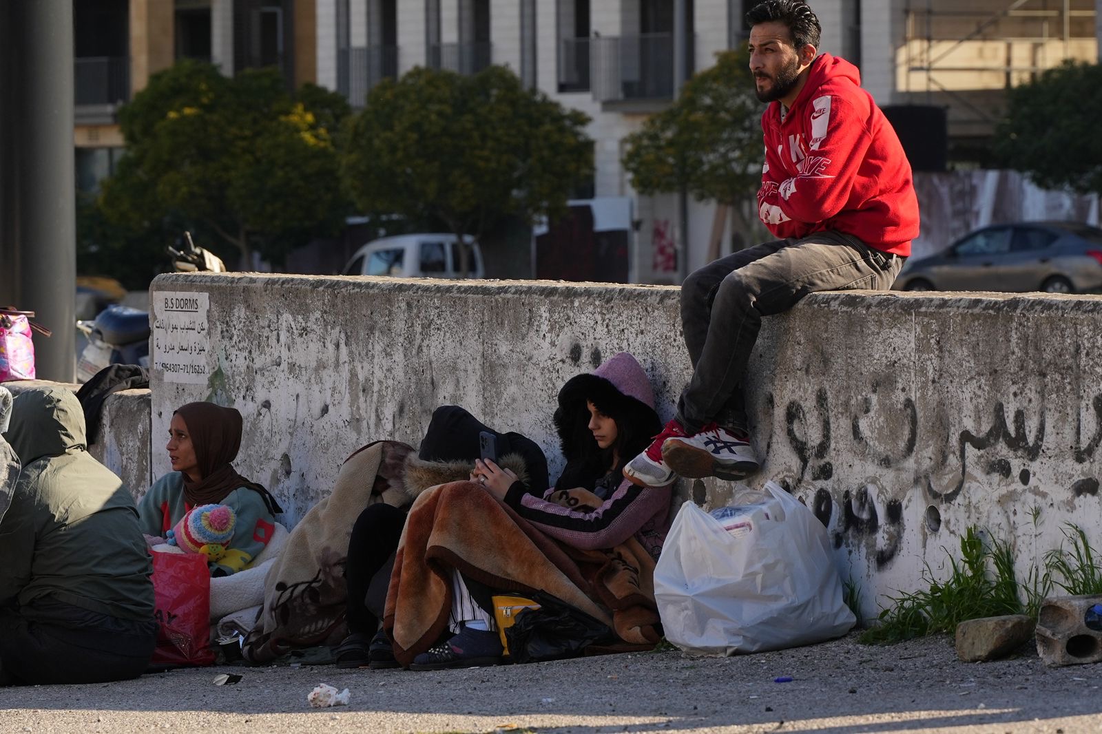 The population's fear was compounded by the ordeal of the coastal highway's gridlock. After leaving their homes around 2:30 am, thousands of families arrived in the early morning in the capital's public areas, particularly Martyrs' Square, sleeping outdoors or in their cars, awaiting government assistance and temporary accommodation in public schools and religious communities.
