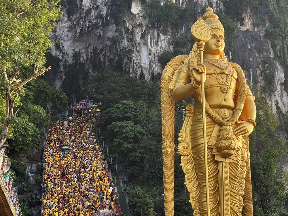 En la tradición hindú, la celebración del Thaipusam conmemora la victoria del dios Murugan sobre el demonio Surapadman, derrotado con la lanza divina (vel) que le regaló su madre, la diosa Parvati. La fiesta simboliza el triunfo del bien sobre el mal y el restablecimiento del orden cósmico en la mitología hindú. Se calcula que participaron más de 2,5 millones de devotos y visitantes. Para la ocasión, los fieles pudieron admirar de nuevo la imponente estatua dorada de Murugan, de 43 metros de altura, cuya restauración ha sido completada.