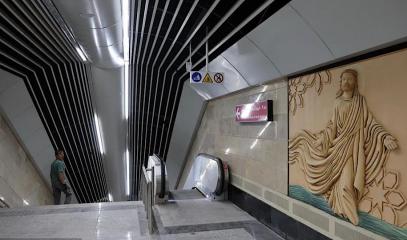 L’illuminazione e i colori sobri della stazione mirano a ricreare l’atmosfera pacifica di questa chiesa. Elementi ornamentali che evocano la simbologia cristiana sono stati integrati in bassorilievi, collegandoli a testi coranici, alla tradizione musulmana, alla poesia persiana, così come alle dichiarazioni dell’Imam Khomeini e dell’attuale guida suprema.