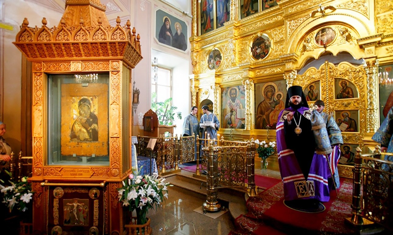 Si cominciò a parlare di una esposizione più aperta delle sacre icone solo verso la fine degli anni Ottanta, nella preparazione delle celebrazioni del Millennio del Battesimo della Rus’ nel 1988, in cui uno degli organizzatori più attivi era il giovane metropolita Kirill, oggi patriarca di Mosca. L’accesso fu però realmente liberato solo dopo la fine dell’Urss, e nelle sale della Galleria cominciarono a formarsi enormi code non solo di turisti e visitatori, ma soprattutto di fedeli tornati all’Ortodossia, che si fermavano a prostrarsi e a pregare davanti alla Madre di Dio Vladimirskaja, magari cercando di toccarla per ottenere magicamente qualche forma di intercessione. Si prese quindi la decisione di spostare l’icona della Tenerezza in una cappella di S. Nicola ricostruita apposta nel cortile del museo, e per ammirarla è stato finora necessario entrare senza copricapo e con abiti adeguati, facendosi il segno di croce con tre dita secondo i canoni della liturgia russa. Ora invece si può soltanto contemplare la Donskaja e la Vladimirskaja nella cattedrale all’ombra del Cremlino, dove stranieri e turisti non hanno il diritto di entrare, e magari neppure i russi dichiarati “agenti stranieri”.